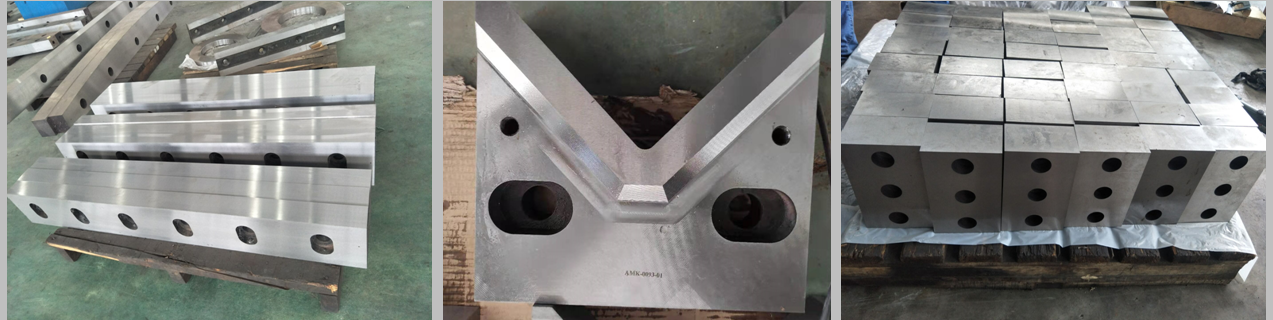 Metallurgical blades are mainly made of H13, H13K, H3, 9CrSi,5CrW2Si,6CrW2Si,Cr12Mov, W18Cr4V,SKD61,SKD11,D2 and other high quality tool steels and alloy tool steels. It has the characteristics of high precision, sharp edge, impact resistance and wear-resistance, mainly used for shearing of continuous casting, continuous rolling and slab opening.